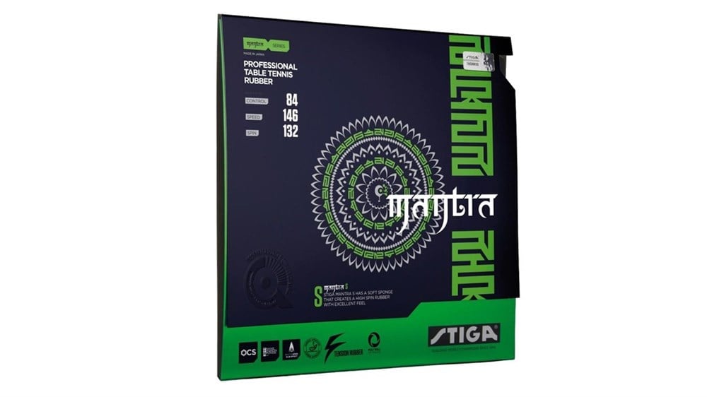Mantra, Stiga'nın geliştirdiği en son lastiktir. Üst yüzeyde kullanılan doğal ve sentetik kauçuk karışımı sayesinde lastik oldukça spinli ve hızlıdır. süngerde kullanılan OCS (Oxygen Capsule System) sayesinde lastik enerji transferini gayet başarılı şekilde iletir. Bu yeni lastiğin en yumuşak versiyonu olan Mantra S, çok spin ve kontrol sunuyor.